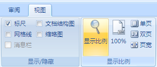 设置Word2007页面显示比例,在视图标签页-显示比例中设置即可。