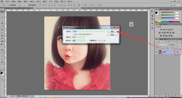 2、打开图片之后,双击该背景图层右边的锁头图标,在“新建图层”窗口上点击“确定”;