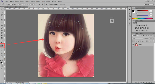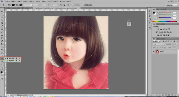 3、图片解锁之后,使用钢笔工具在图片上方画出一个不规则的图形;