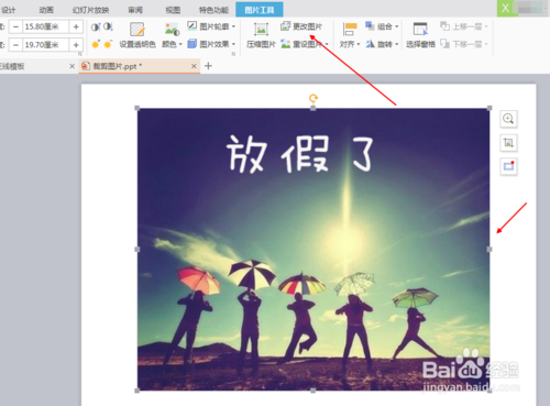 单击插入的图片,上面出现一个图片工具选项卡。
