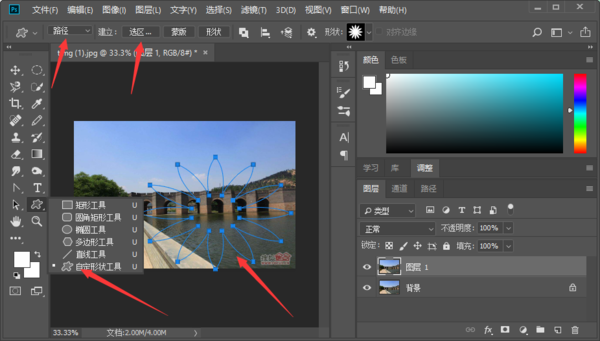 photoshop将图片裁剪成不规则形状,具体步骤如下: