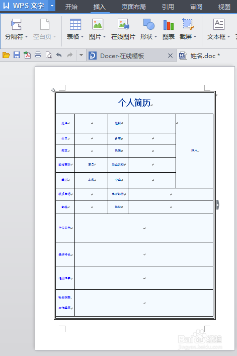 我们利用单元格合并和居中功能对部分单元格进行合并,使用其具有招聘表的模型,大家可以参考下图进行合并;合并只有手动合并。
