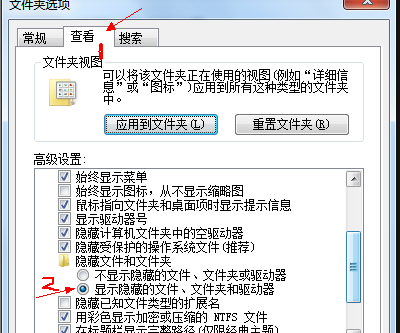 打开 我的电脑 工具 文件夹选项 查看 在高级设置里 找到 显示所有文件和文件夹,这样可查看 隐藏文件