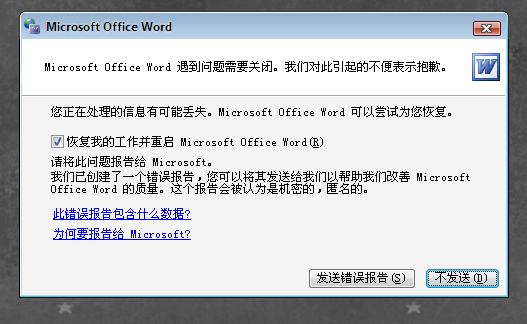 Microsoft Word出现错误解决 打开Microsoft Word老是发送错误报告是怎么了?
