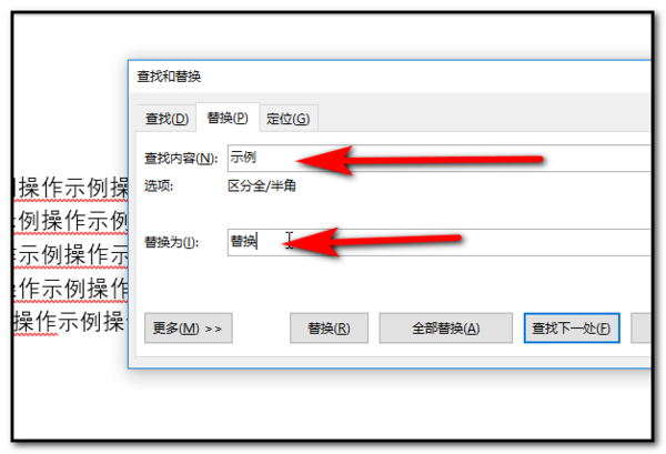 2、接着在对话框中,在查找内容中输入需要修改的文字内容,替换那处则输入需要替换后的文字内容。