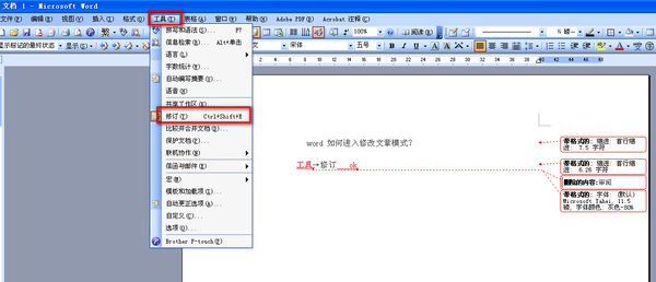 在打开的word文档中,鼠标左键点击菜单栏的“工具”,在下拉菜单中点击“修订”,进入文档的修订模式,此后你对文档进行的任何修改都会以红色字显示,修改的内容会在页面右侧清晰显示,如图