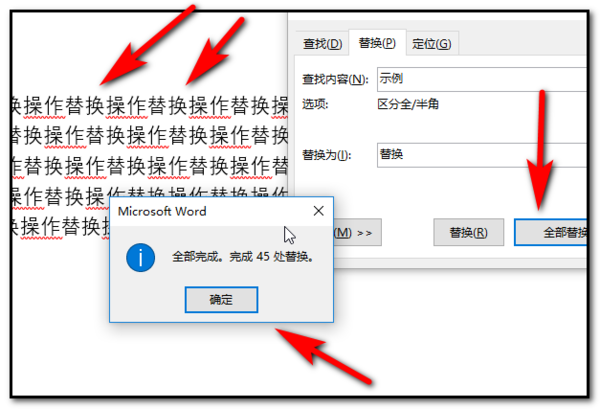 3、接着点击下方的“全部替换”按钮,即可把所有文字检测出来替换掉。