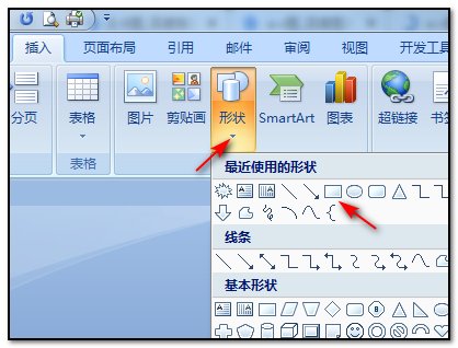 2、打开word文档以后,先点击上方工具栏中插入形状下拉矩形图形;