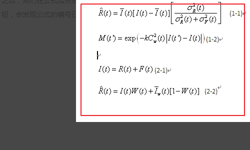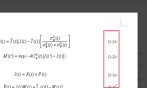 8.依次对其他公式使用步骤5-7即可.大家可以根据需要自行在公式编号上添加括号.最终效果如下: