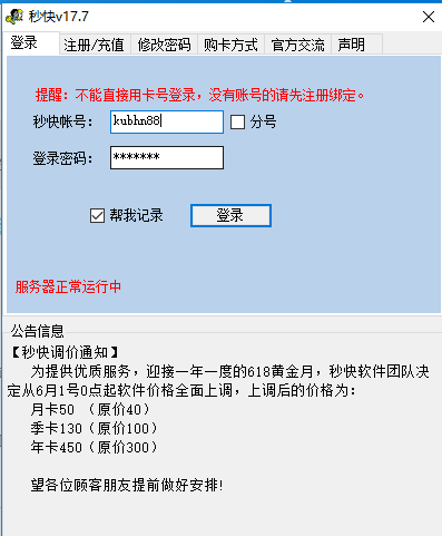 哈哈 我以为只有我才是傻子看来和我一样上当受骗的人不少嘛兄弟我也给他们骗了300大洋在群里面只是说了一下这个软件的缺点就被踢了软件用了两个多月毛都没抢到过现在软件和你的一样根本就登录不了刚刚去下载了最新的版本一样不能登录