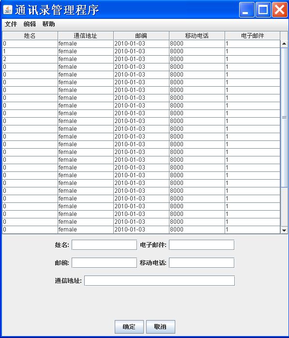 java通讯录管理
