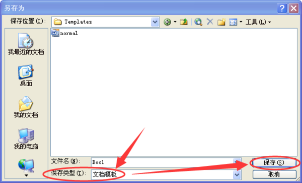 2、保存时在“保存类型”中选择“文档模板”,模板的文件名可以自己取一个。这样一个新做好的模板文档就会自动保存到Word下的Templates文件夹中了。