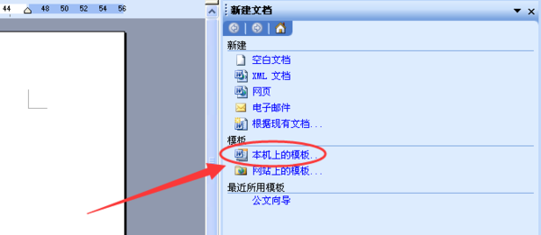 3、使用模板。打开Word后,点击【文件】菜单下的“新建”,在右边跳出的“新建文档”,选择“本机上的模板”,再在对话框中选定用户自己要使用的模板,即可调用自定义的模板了(以前一切设定的参数不必再一一设定)。