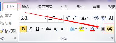 点击word菜单栏中的“开始”,然后在弹出的工具列表中选择“带圈的字”工具,如下图所示