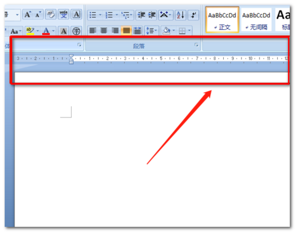 1、 打开Word文档,可以看到页面中没有标尺,我们点击右上角的图标。