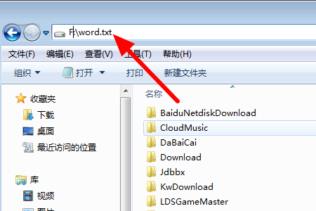 7、然后打开计算机,点击上方输入F:\word.txt,回车确定。