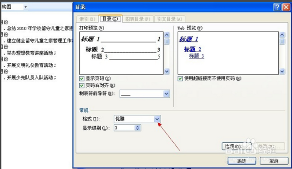 7、 点击“插入目录”在这里你可以选择喜欢的格式,如图点击确定。