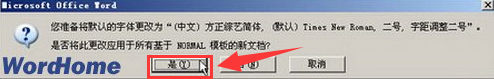 第3步,打开提示框,提示用户此更改将修改Normal模板。单击“是”按钮即可更改默认字体和字体大小等设置。