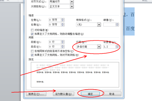 word文档中 怎样将一个段落中的行距设为1.2倍呢