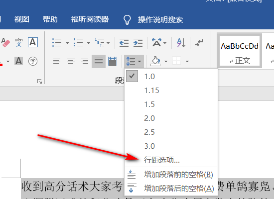 word1.25倍行距怎么设置