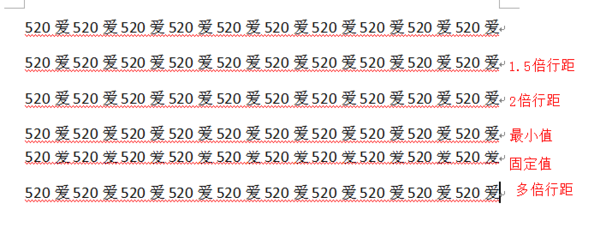 word中的单倍行距,1.5倍行距,2倍行距,最小值,固定值,多倍行距。各分为代表什么意思?又有什么区别?