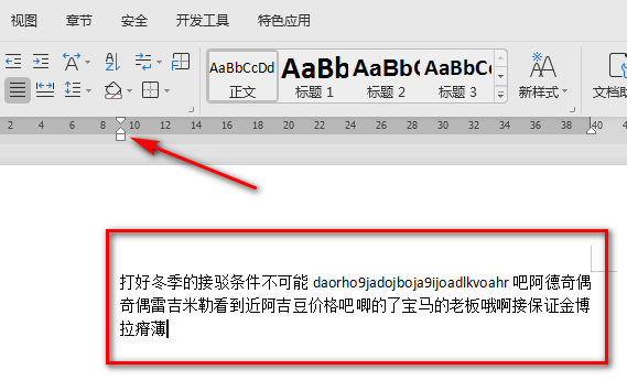 4、左键点击该图标不动并向右拖动,即可将鼠标光标所在位置的段落整体缩进,缩进的字符根据标尺上的刻度计算。