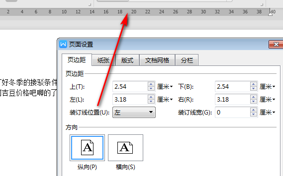 4、鼠标左键双击标尺,就可以快速进入页面设置。