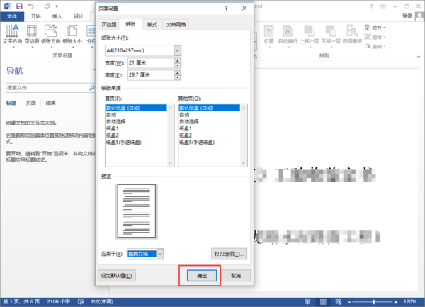 word中如何设置页面大小,如设置为A4纸