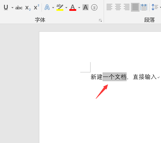 或者在新建文档之后,直接输入文字,然后选中需要加下划线的部分;