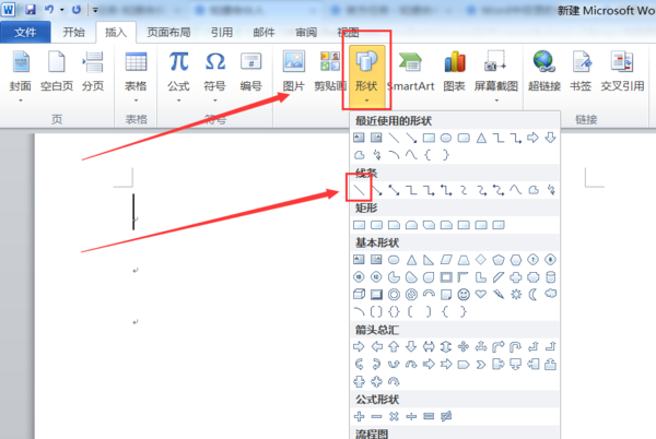 2、点击“形状”,在“线条”中找到并选择“直线”。