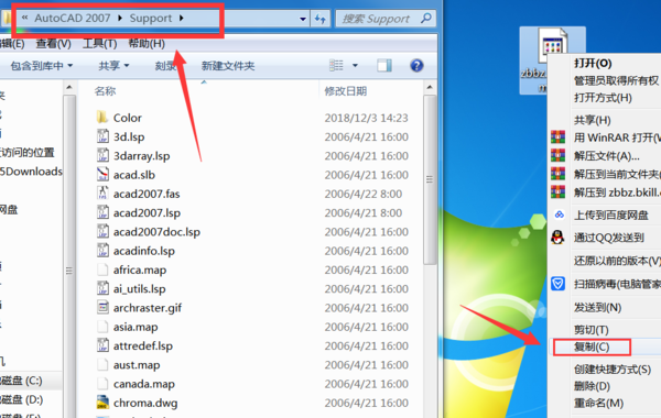 1.下载后解压,将文件复制到CAD的安装目录Support文件夹内(如:C:\Program Files\AutoCAD 200*\Support);
