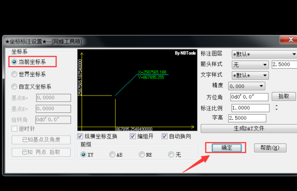 8、设置完坐标属性后在绘图区随意点击一个点,然后移动鼠标就可以看见该点的坐标标注。