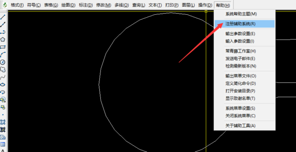 (3)在常青藤工具栏中点帮助选项,在帮助选项下拉菜单中选择“注册辅助系统”