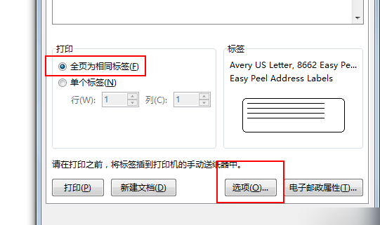 在Word文档中,每个标签包含了多个不同收件人的信函邮件地址。用户可以设置标签选项,以选择标签类型。具体操作步骤如下所述: