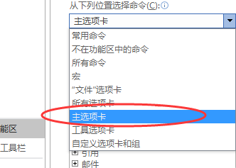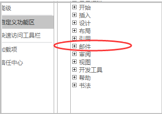 word中现邮件选项卡,可在自定义功能区中定义显示出来。