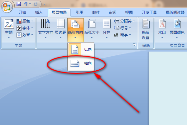 然后,设置这页的纸张方向(页面布局--页面设置--纸张方向)为“横向”。