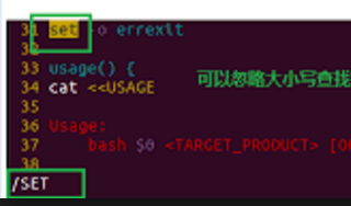 Vim查找支持正则表达式,例如/vim$匹配行尾的"vim"。 需要查找特殊字符需要转义,例如/vim\$匹配"vim$",在查找模式中加入\c表示大小写不敏感查找.例如,在文件中查找set: