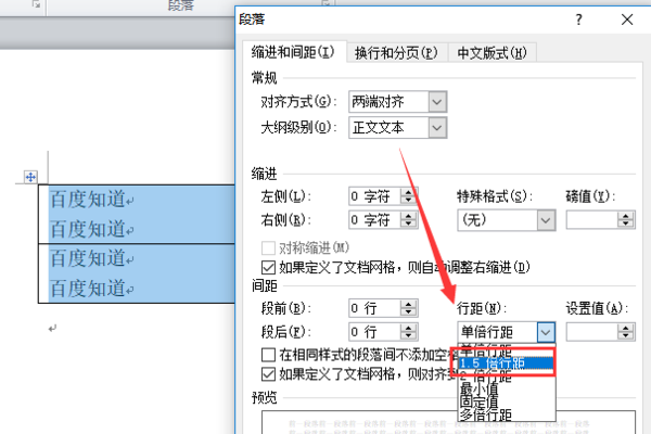 4、在弹出的对话框中设置需要的行间距