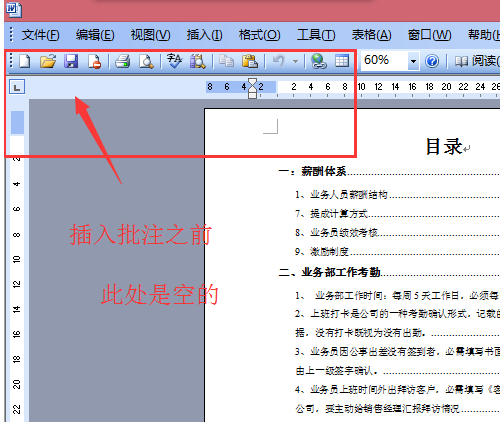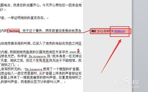找到批注之后可以进行单击操作,只要点击就会发现在自己先前鼠标点到的文档里出现批注的相关东西了