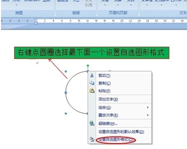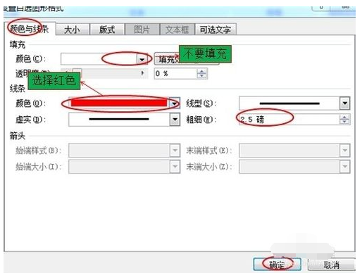 3、右击圆形选 ‘设置自选图形格式’,线条颜色选红色,线形选3磅。