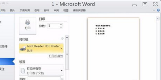 3、接着,在安装有Foxit Reader阅读器的情况下,选择打印设备为Foxit Reader,如图所示。