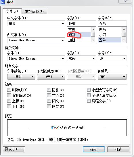 word字体设置问题,如何使字体倾斜?