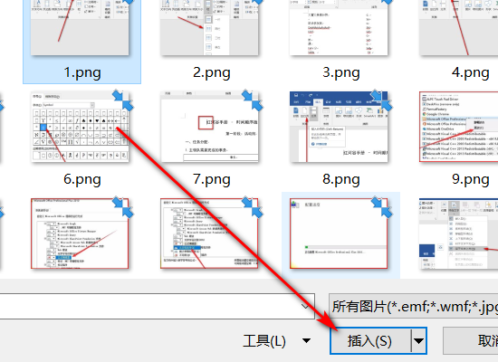 2)“插入-图片”,一次选择多个要插入的文件,“插入”。