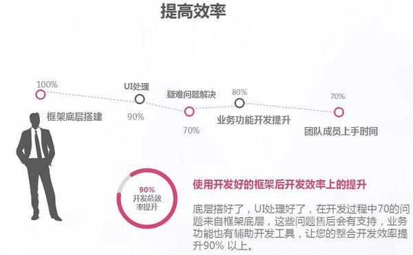 快速开发。开发框架中有多套开发模板,选择模板后按照向导操作可自动产生包含界面在内的所有代码。如果需要二次开发,可以直接修改生成的源代码。·说得夸张一些如果产品经理拿这套框架进行建模,模型出来了软件也基本就开发出来了,在编码效率上至少比传统开发提高90%的效率。如果您想了解更多关于这个框架的介绍或价格可以打这个号码前面三位是一三六,中间四位是六一二零,末尾是四一四七。