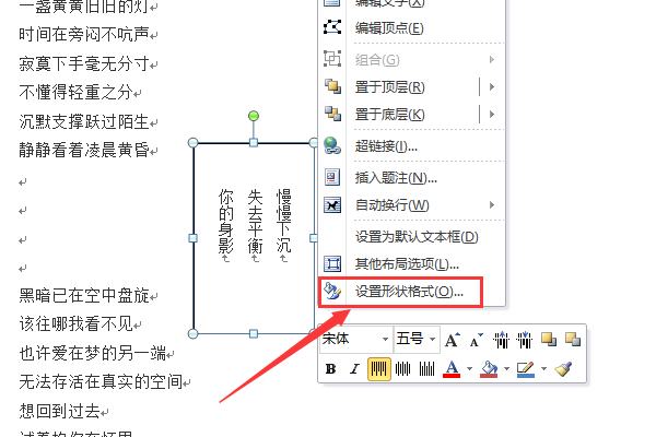 五、选中文本框,右键选择“设置形状格式”。