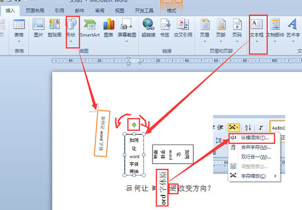 word中如何改变部分文字方向,