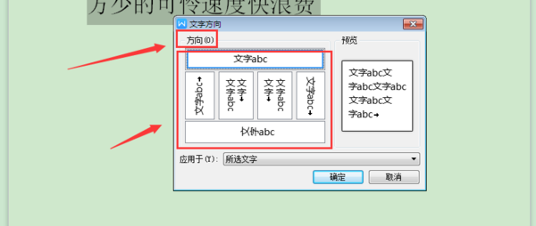 6.可以根据需要来选择那种形式的“文字方向”(如下图)。