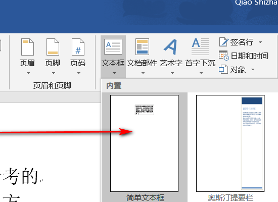 4、在接着进入的界面右侧点击“文本框”,在随后打开的下拉菜单中点击“简单文本框”。