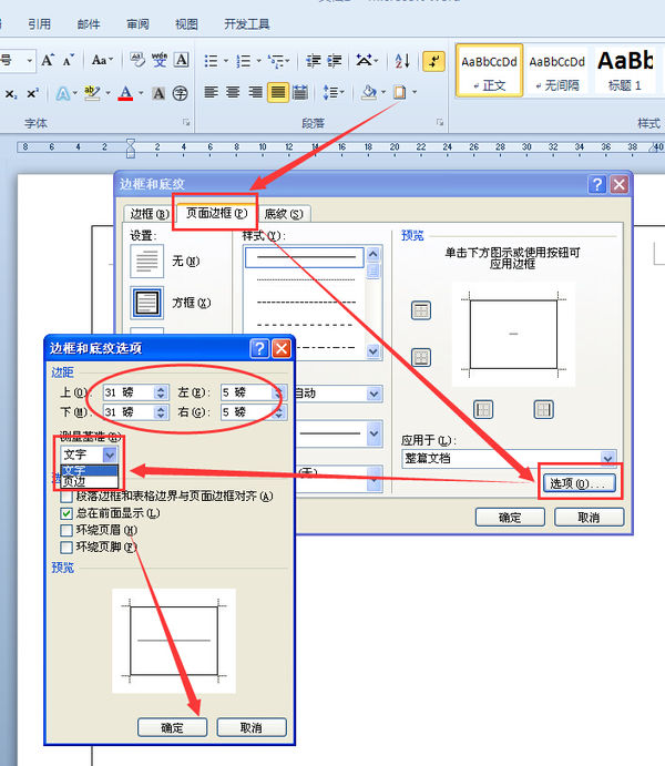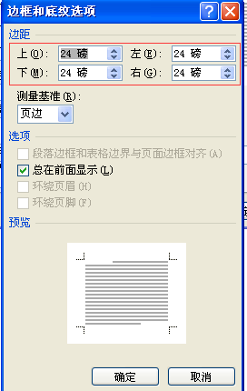 word 页面边框 设置边框大小