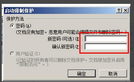 在弹出的“启动强制保护”窗口中,输入并确认密码,点击“确定”。